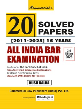 This 3rd Edition of Commercial’s 20 Solved Papers (2011–2025) – 15 Years All India Bar Examination, updated up to 2026, serves as a comprehensive and reliable resource for candidates preparing for the All India Bar Examination (AIBE) conducted by the Bar Council of India. Designed specifically to meet the examination requirements, this book provides solved papers from the past 15 years (2011–2025) with answers and exhaustive explanations, making it an essential tool for thorough preparation and self-assessment.