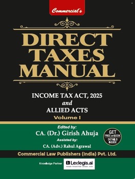 This edition of the Direct Taxes Manual, updated for the year 2026, serves as a comprehensive and authoritative legal reference for CAs / CS / Tax Professionals in law, finance, taxation, and accounting. Edited by CA (Dr.) Girish Ahuja and assisted by CA (Adv.) Rahul Agrawal, the manual is presented in two volumes, covering the Income Tax Act, 2025 along with Allied Acts FAQs (Volume I), and the Income Tax Rules, 2026 (Volume II) with Allied Rules. The book presents the bare text of the law along with essential supporting material, making it highly suitable for both academic and professional use.